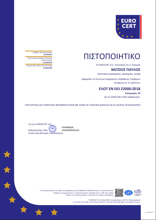 Πιστοποιήσεις Παρακάτω μπορείτε να βρείτε τις προδιαγραφές του Συστήματος Διαχείρισης Ασφάλειας και ποιότητας τροφίμων (Haccp-Iso 22000:2005) : Ελληνικά Αγγλικά